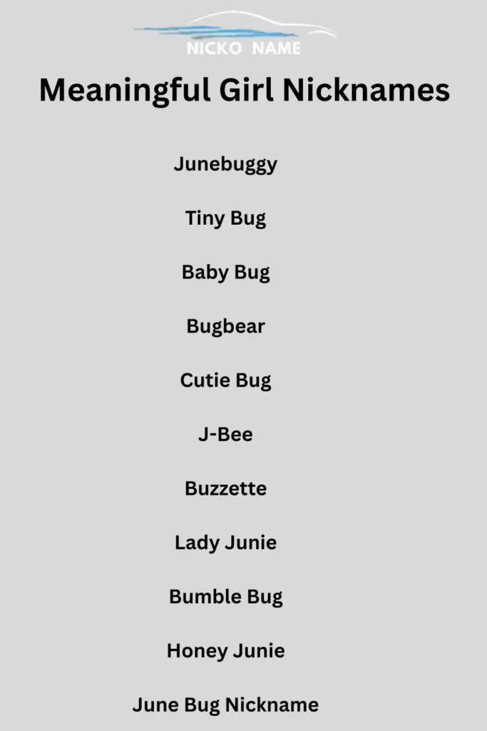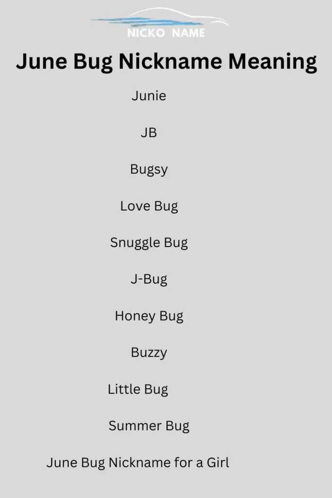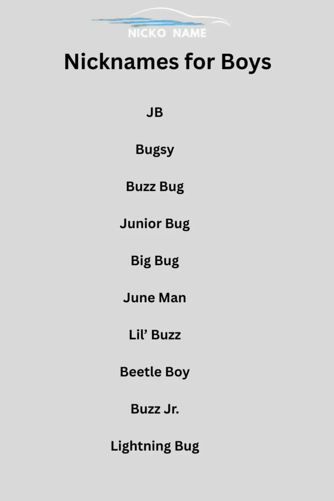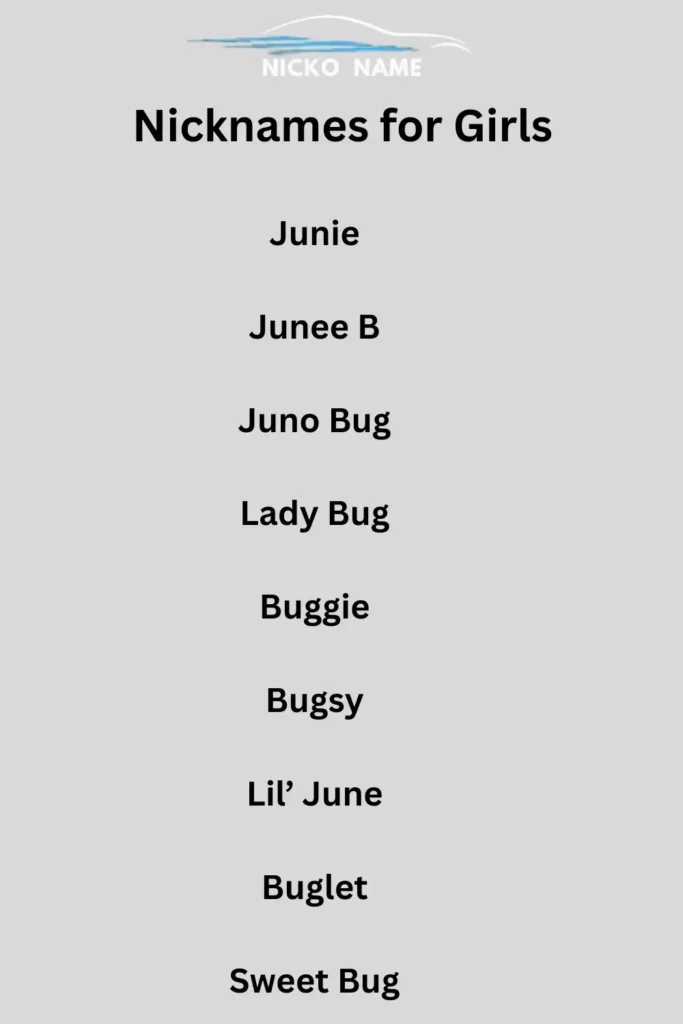 The nickname “June Bug” is often shortened or adapted into playful variations like Junie, JB, Bugsy, Little Bug, or Honey Bug. Families and friends use these nicknames as terms of affection for children or loved ones.